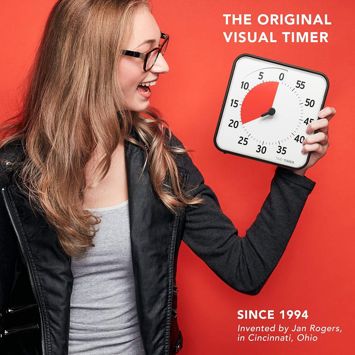 Time Timer has proven for 25 years to be a globally recognized time management resource. Designed to show the passage of time using the signature red disk. As time elapses, the red disk disappears in a clear, graphic way – making common routines at work, school and home stress-free and enjoyable. The Time Timer Original 8 inch is the ideal 60-minute visual timer for all abilities, including kids and adults with autism or ADHD. This large timer for kids and professionals has easy-to-read, large numbers, a protective lens, and included dry erase activity card. If desired, write or draw the task on the included Dry Erase Activity Card and place card on top slot. Turn the center knob to move the red disk counter-clockwise to the duration of your choice (up to 60 minutes). The timer is now set, and the quiet countdown has begun. No ticking means no distractions! As time expires, the red disk disappears moving in a clockwise direction – providing an understanding of time left with just a quick glance. For the ultimate in flexibility, the Time Timer Original 8 inch can be used on magnetic whiteboards and numerous other metallic surfaces. It can also stand on a flat surface with its two foldable feet or be hung on the wall. An optional alert (on/off) on the back of the timer controls the sound at the end of the timing cycle.