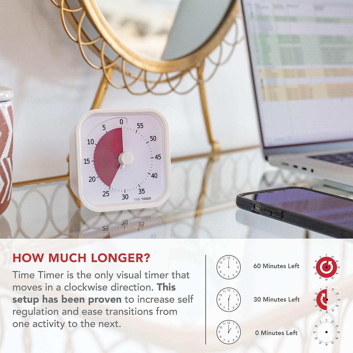Time Timer has proven for 25 years to be a globally recognized time management resource for kids and adults. The learning timer is designed to show the passage of time using the signature red disk. As time elapses, the red disk disappears clockwise in a clear, visual way making daily routines stress-free and enjoyable at home, school and work. The optional alert (on/off) on the back of the timer controls the sound at the end of the timing cycle. Turn the center knob on the front of the visual timer counterclockwise until you reach your chosen time interval (up to 60 minutes). The Time Timer MOD Home Edition is the ideal 60-minute visual timer for all abilities and ages, including kids and adults with autism or ADHD. Personalize your desk timer, homework timer, kitchen timer, school timer or work timer. Express your unique personality with the 4 different available silicone case colors sold separately (additional colors sold as 2-pack)