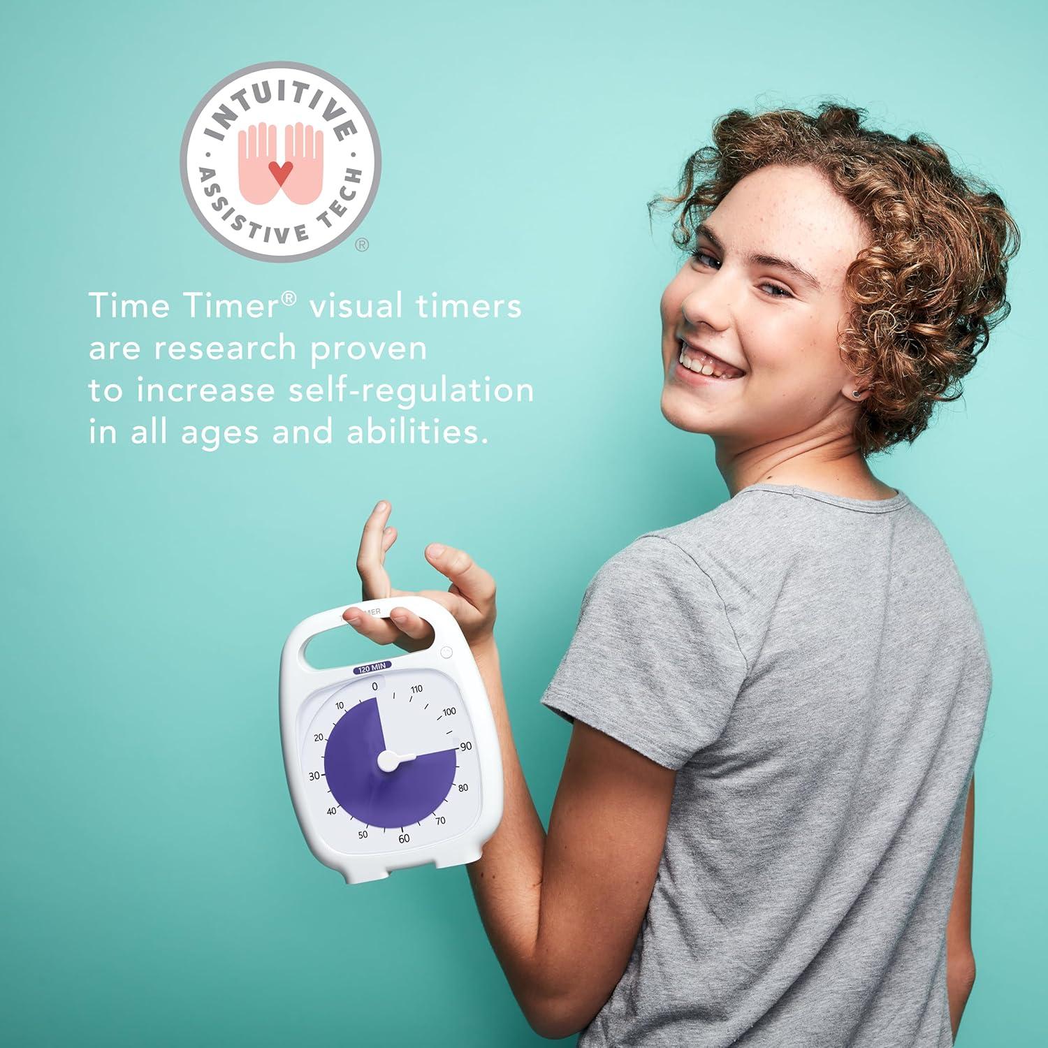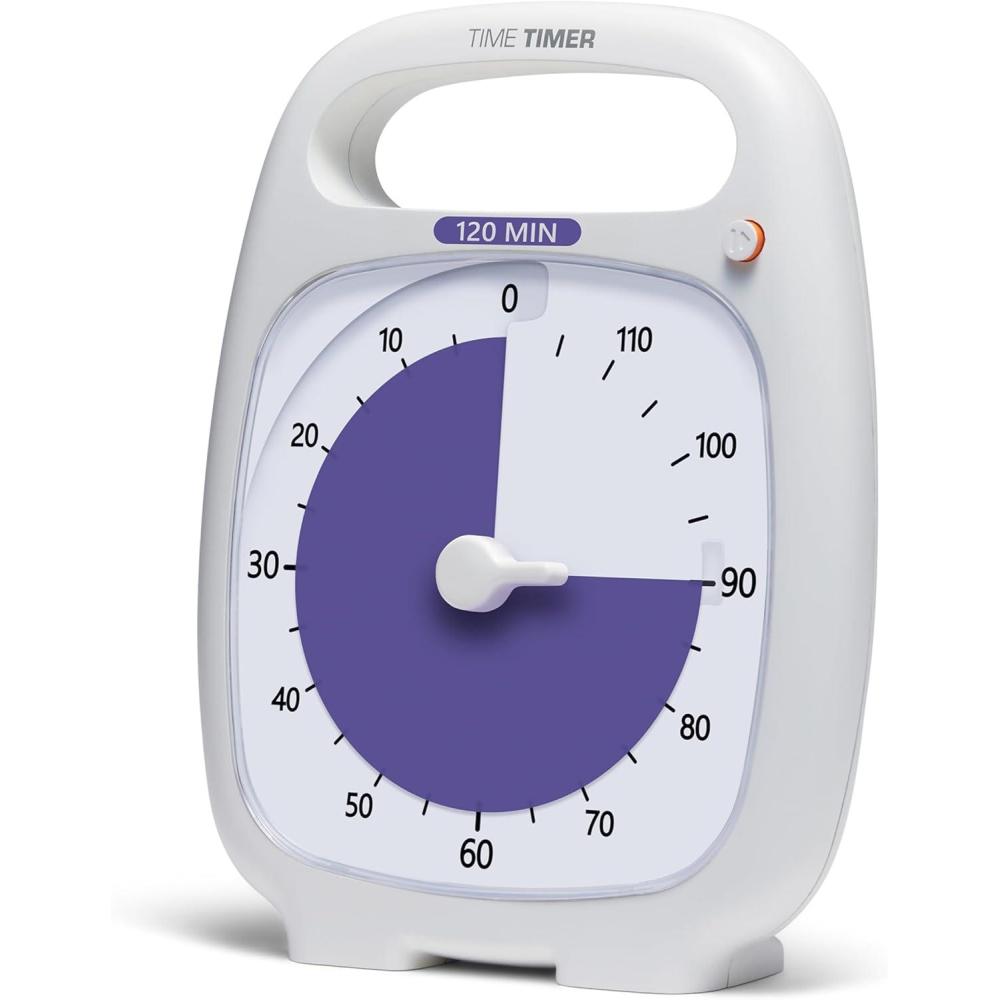 Time Timer Proven for 25 years to be a globally recognized time management resource Designed to show the passage of time using the signature colored disk As time elapses the colored disk disappears in a graphic clear way – making common routines at work school and home stress-free and enjoyable The Time Timer PLUS 120 Minute is the ideal 2-hour visual timer for longer duration needs and all abilities including kids and adults with Autism / ADHD This desktop timer for kids and professionals is a must-have resource for monitoring screen time studying for an upcoming test group projects team building exercises workshops managing a long meeting long periods of focused work organizing or household projects Easy to use Turn the center knob on the front of the timer counter-clockwise until you reach your chosen amount of time (up to 120-minutes) Immediately your new timer will begin to countdown and a quick glance will reveal the time left thanks to the brightly colored disk and large easy-to-read numbers No ticking – no distractions! Use the volume-control dial on the back of the timer to control the audio alert (may be silenced for sound-sensitive environments) The Time Timer PLUS battery compartment is securely closed by a small screw in adherence with the Consumer Product Safety Improvement Act (CPSIA) standards QUESTIONS AMZsupport@timetimer