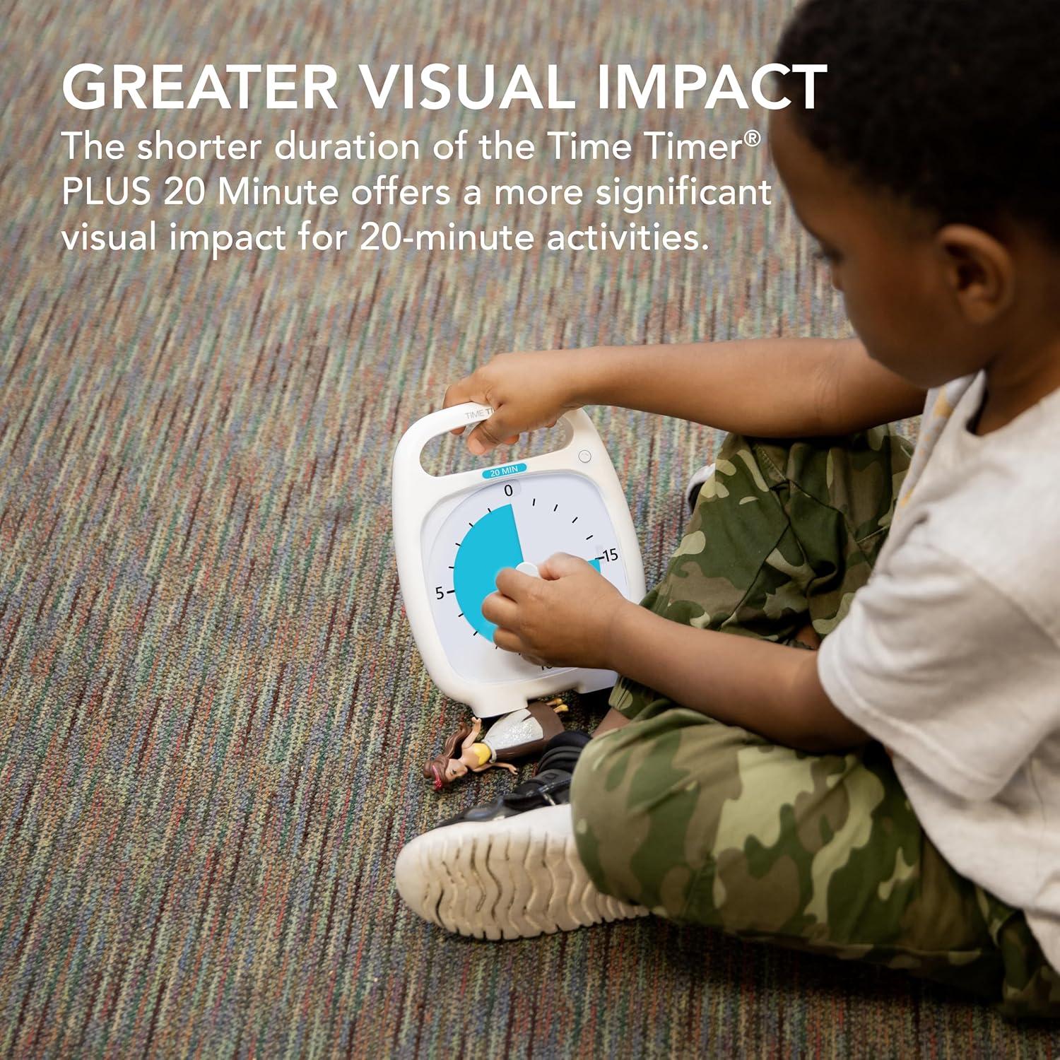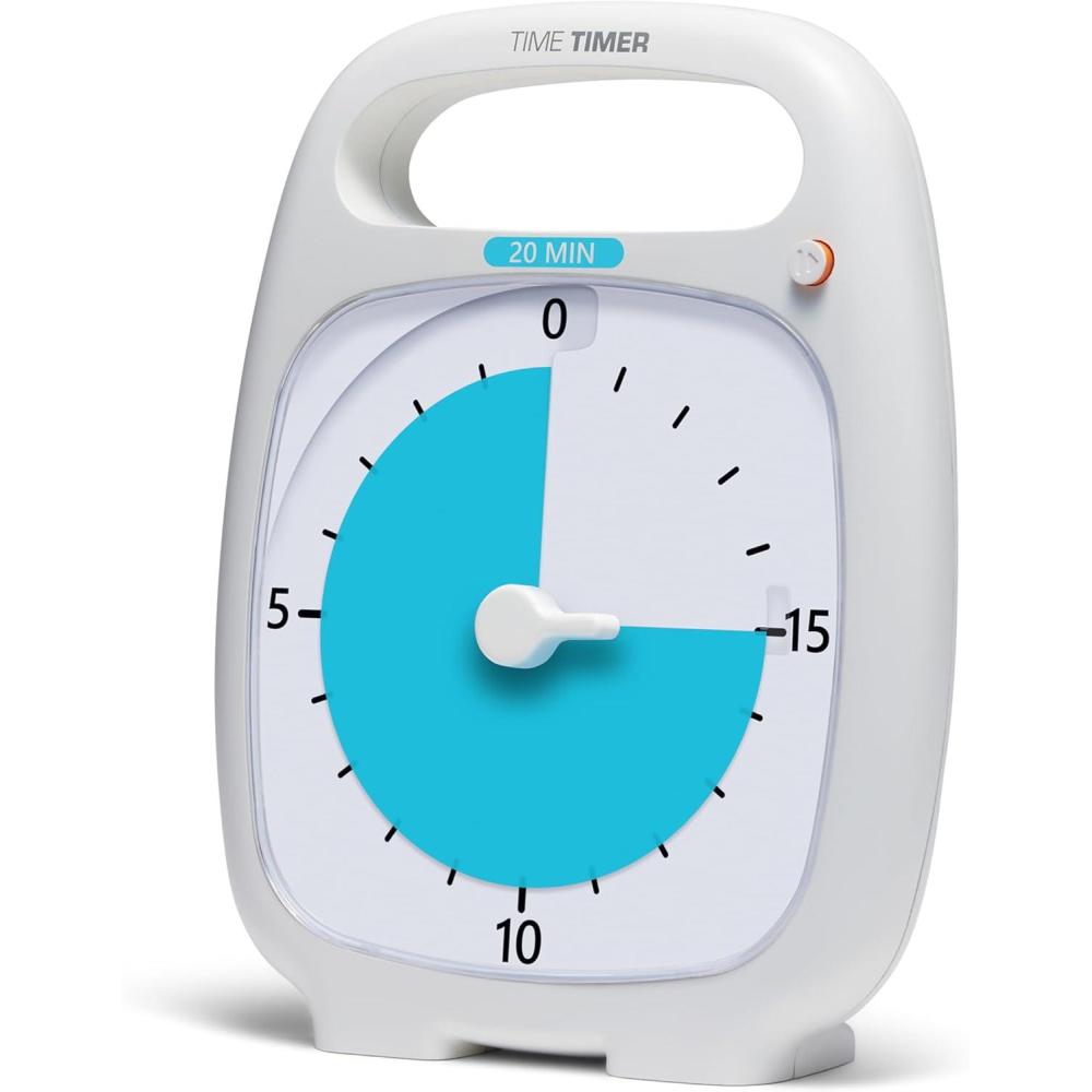 TIME TIMER PLUS 120 Minute Desk Visual Timer Countdown Timer with Portable Handle for Classroom, Office, Homeschooling, Study Tool, with Silent Operation (White)(20 Minutes)